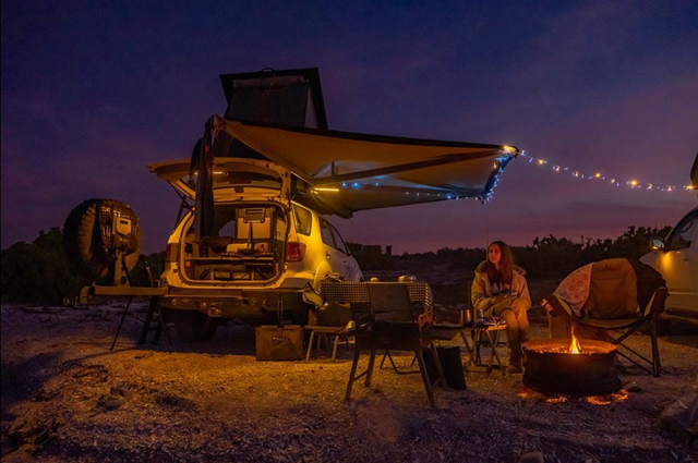 For seasoned campers, an awning is very often the first accessory they bolt to their vehicle, knowing that the ability to cast as much shade as possible (in the quickest time) is crucial to overland travel. For inclement weather the guy ropes should be used to prevent pooling of water on the canvas and to guide water runoff in preferred places.