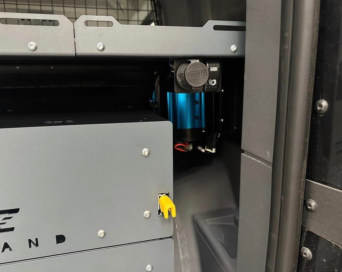 For a complete setup, the Cargo Rax pairs seamlessly with the Buzz Overland Cargo Barrier and Roof Shelf, providing a fully integrated storage solution. Additional options like the Rax Camp Table—a low-profile, stainless steel table that mounts beneath the rax—and the ARB Compressor Bracket and Switch Plate give you further customization options, allowing you to tailor the system to your specific needs.