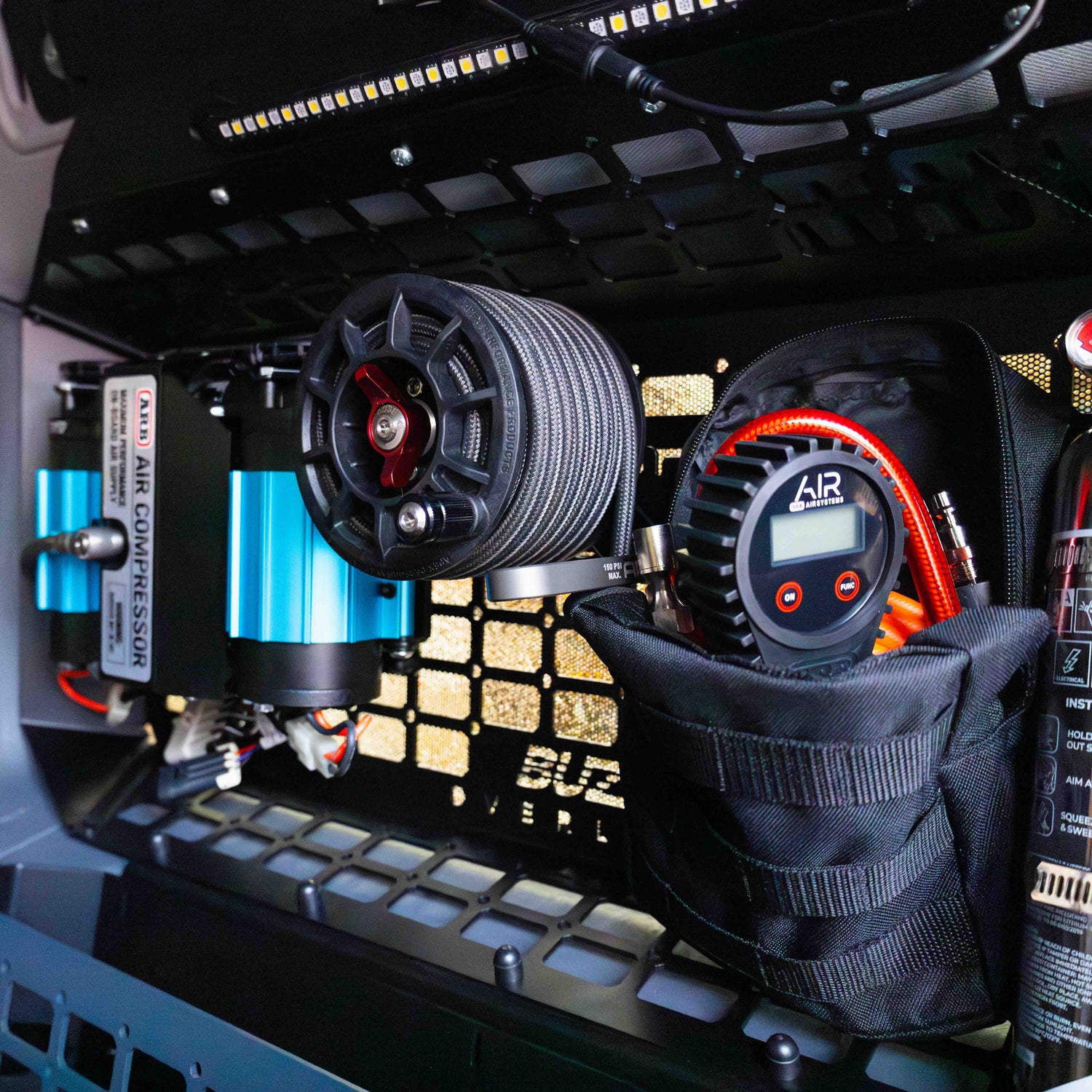 Transform the often-wasted space in your INEOS Grenadier's rear window reveals (trunk/boot area) into a highly functional, ultra-secure MOLLE mounting system. Designed and manufactured by Buzz Overland, these panels deliver superior rigidity, smart integration, and unmatched versatility..