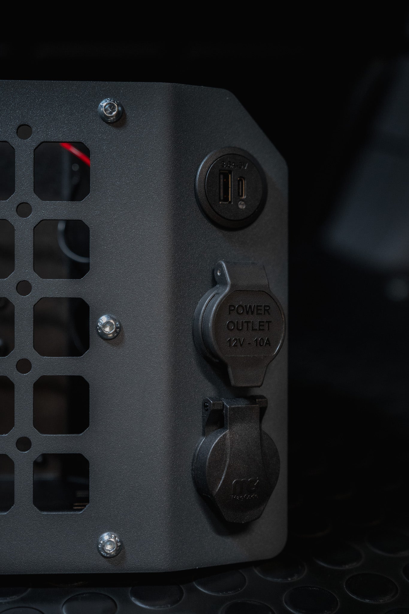 - Auxiliary Power Provision: Unique mounting points on the front face for installing power outlets (sold separately)